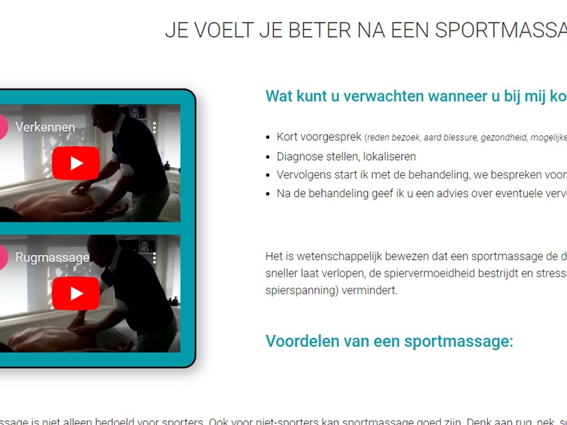 Bert gaf aan dat klanten een eerste bezoek best wel spannend vonden, een fysieke behandeling vraagt direct contact tussen behandelaar en client. Uitdaging was om een open en toegankelijke website te maken.